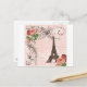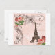 Cartão Postal Torre Eiffel Rosa e Rosa Vermelha