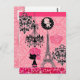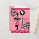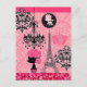 Cartão Postal Torre Girly Eiffel Francesa, Torre Puppy & Damask