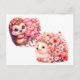 Cartão Postal Tow cuteRomantic Floral Hedgehog Duo Illustration