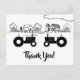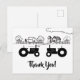 Este cartão postal preto e branco de agradecimento apresenta dois tratores silhueta apaixonados. Eles estão contra um charmoso desenho de linha do campo.
