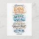 This is a postcard with the travel quote, "Beyond the east the sunrise, beyond the west the sea, and east and west the wander-thirst that will not let me be" (Gerald Gould).