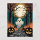 Cartão Postal Trendy spooky Halloween Pumpkin Ghost Moon forest