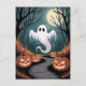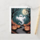 Cartão Postal Trendy spooky Halloween Pumpkin Ghost Moon forest