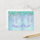 Chic bonito e elegante e iridescente aqua turquoise unicorn arco-íris falso brilhando cartão de Natal. Belo, moderno e legal e brilhante design mágico. Personalize-o com a sua própria mensagem ou nomes, perfeito para as férias e a época de Natal. NOTA: Estes são gráficos impressos - sem brilho real, joias ou peças levantadas.