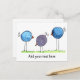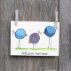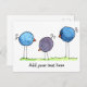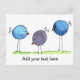 Pintura divertida com aquarela de três aves brancas em azul e roxo, com pernas longas e finas sobre grama verde. Um modelo abaixo da imagem para adicionar seu próprio texto para personalizar.