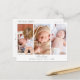 Crie seu próprio cartão de colagem de fotos de agradecimento para o chá de bebê para agradecer amigos e familiares por receberem seu pequeno! O design elegante e minimalista apresenta uma colagem de três fotos personalizadas no topo e tipografia elegante na parte inferior com sua mensagem "obrigado" em um script sofisticado e as informações do seu bebê. No verso, há uma mensagem personalizável com seu endereço e um pequeno coração. Torne-o único substituindo o texto e as imagens clicando no botão "Personalizar".