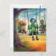 Esta enérgica ilustração do Dia das Bruxas apresenta três crianças mortas balançando alegremente sob um céu pintado de outono. Com olhos vermelhos brilhantes, ressonâncias selvagens, e roupas coloridas, esta design assustadora e fofinha combina a inocência da infância com o talento de horror — perfeita para correio de caracol assustador ou colecionadores de arte.