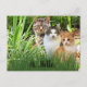 Cartão Postal Três Gatos Tabby no Jardim "Olá"