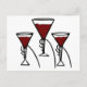 Cartão Postal Três Óculos de Vinho em Cartografia de Mãos