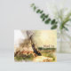 Este convite para o casamento apresenta um belo conjunto de dicas tribais de aquarela contra um fundo cênico. Na parte de trás, há uma flecha com coração e vinha.