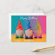 Cartão Postal Trio de Figuras de Gnome de Cerâmica Brilhante com