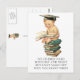 Óculos bonitos e antigos de um pequeno estudioso de bebês, vestindo seu boné de formatura, sentado sobre uma pilha de livros e lendo. Escreva-lhe imediatamente! Arte de Charles Twelvetres