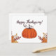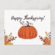 Celebre o Dia de Ação de Graças com este cartão postal ilustrado de forma elegante, com uma abóbora laranja rústica cercada por folhas vibrantes do outono. O design caloroso e convidativo captura a essência do outono, fazer uma maneira perfeita de enviar seus sentidos desejos de feriados para amigos e familiares. Quer você esteja expressando gratidão ou simplesmente compartilhando a alegria da temporada, este cartão postal é uma encantadora lembrança que encarna o espírito da Ação de Graças.