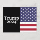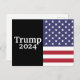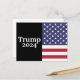 Este cartão postal da campanha presidencial Donald Trump 2024 tem um fundo preto e o título "Trump 2024" impresso em branco. A parte certa mostra uma imagem da bandeira americana. Mostre seu apoio e respeito a Donald Trump como presidente republicano na eleição de 2024 nos EUA.
