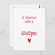 Novo Parque - Cartão postal engraçado que diz: 'Começou com um Swipe!' em uma tipografia vermelha divertida, e um pequeno coração vermelho fofo.