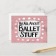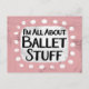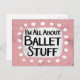 "Eu sou Tudo Sobre Coisas de Ballet" é um design de texto fofo em rosa com texto preto, juntamente com uma forma de acento branco e pontos caprichosos texturizados brancos ao redor.