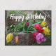 Cartão Postal Tulip Flowers Rustic Buquê Happy Birthday