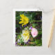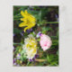 Cartão Postal Tulipas brancas, rosadas e amarelas no jardim