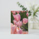 Tulipas cor-de-rosa num leito de flores com os padrões de luz solar nas pétalas.
