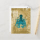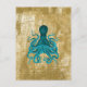 Cartão Postal Turquesa Octopus no Ouro Grunge