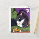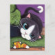 Cartão Postal Tuxedo Cat Bruxa Chapéu e Maçã-doce Halloween