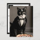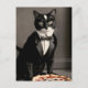 Cartão Postal Tuxedo cat e pizza