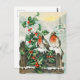Vintage Christmas illustration of two little robins sitting on a fence with holly berries in the snow.