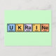 Aqui temos a palavra Ucrânia formada pelos seguintes elementos da tabela periódica: Urânio, Potássio, Rádio, Iodo e Neônio.