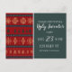 This festive invitation design brings classic holiday charm with a bold red knit pattern on the left and a modern deep green text panel on the right. Snowflake and tree knit motifs create a cozy sweater vibe, while elegant white lettering highlights the party details. Perfect for hosting a fun and cheerful ugly sweater gathering, this invitation sets the tone for a warm and spirited holiday celebration.