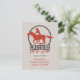 Yee haw!!! É hora de celebrar mais uma vez antes que essa vaqueira se case! É a última cavalgada para a noiva, também conhecida como despedida de solteira. O design apresenta uma vaqueira correndo em seu cavalo em uma moldura de corda com texto western estilizado abaixo. Perfeito para um evento temático western ou country. Disponível em vermelho enferrujado, rosa quente e turquesa brilhante. Produtos correspondentes disponíveis.