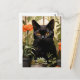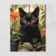 Cartão Postal Um belo gato preto suculentas e flores