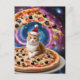 Cartão Postal Um Feliz Pai Natal Gato de Pizza de Natal