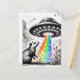 Cartão Postal Um gambá com alguns pássaros e um OVNI
