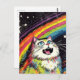 Cartão Postal Um Gato Fluffy Colorido no Espaço