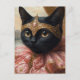 Cartão Postal Um Gato Negro Real a Rosa e Dourado