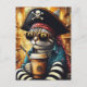 Cartão Postal Um Gato Pirata Adorável Com Café