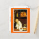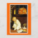 Vintage Halloween ilustra um cartão de saudação mostrando uma criança "assustada" por um jack o'lantern na janela.