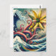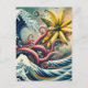 Cartão Postal Um polvo surreal de banana anda por uma onda