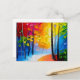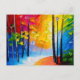 Uma caminhada no parque inspirada em Leonid Afremov. Uma bela e colorida pintura digital de um parque, com árvores adoráveis e um posto de abajur