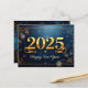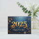 Celebre a chegada de 2025 com estilo e luxo. Esta design do cartão-postal apresenta uma espantosa mistura de azuis profundos, sotaques dourados e faíscas moles, criando uma atmosfera festiva mas refinada. O ousado e elegante '2025' ocupa o palco central, rodeado por delicadas fitas de ouro e prata, com padrões de estrelas e desenhos abstratos moldando as bordas. Os efeitos suaves dos boques e um gradiente suave de escuro a claro aumentam o apelo moderno, mas eterno. A expressão "Feliz ano novo" é graciosamente escrita no fundo, acrescentando um toque de sofisticação. Este cartão postal é a maneira perfeita de lançar no novo ano com elegância e classe