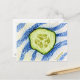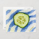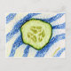 Um lápis e desenho de caneta de uma fatia de um pepino em uma toalha de mesa.