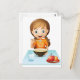 Cartão Postal Uma garota sorrindo comendo seu café da manhã