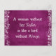 Uma mulher sem sua Irmã é como um pássaro sem asas canta presentes. Bonito presente inspirador para irmãs com fundo fuschia profundo e tipografia branca. Os itens quadrados incluem bordas de faísca do boque.