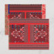 O design parece ser um design têxtil, possivelmente para tecido ou papel de parede. Aqui está uma descrição detalhada: Top Section: Ele tem um fundo vermelho com faixas verticais pretas e brancas, intercaladas com padrões intrincados que se assemelham a designs tradicionais ou tribais. Banda central: Esta seção apresenta as formas de ziguezague e diamante em preto, branco e tons de marrom, flanqueados por faixas verticais finas. Seção Inferior: Mostra um padrão semelhante a um ornamentado em tons vermelhos com um motivo central proeminente que espelha a forma da seção superior, mas em detalhes mais elaborados. O design é bastante complexo e visualmente impressionante, com uma mistura de motivos geométricos e orgânicos. Poderia ser culturalmente importante, especialmente no contexto da design têxtil.