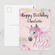 Cartão Postal Unicórnio Aniversário Rosa Azul Floral Nome Person