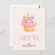 Cartão Postal Unicórnio de Cupcake Rosa Fofo com Rosas Obrigado