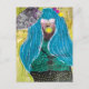 Cartão Postal Unique Lady With Blue Hair Mixed Media Collage