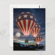 3 hot air balloons in the colors of the American flag in a night flight, under a starry sky, on a full moon evening.
