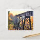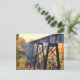 This railroad train trestle crosses over a small river in a deep ravine located in Michigan’s upper peninsula, near Marquette. Based on an analog photograph taken during autumn.
