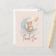 Ursa de pelúcia bege em aquarela do outro lado da lua com balões, cartão de agradecimento para festa de chá de bebê.